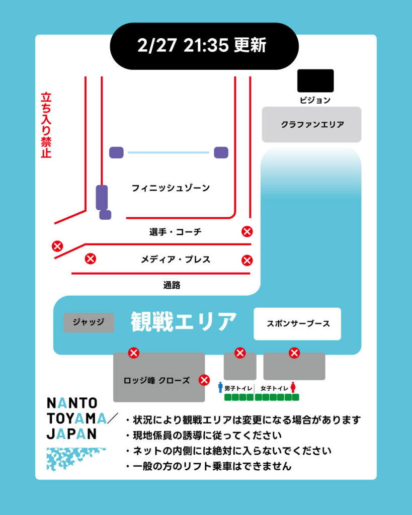 本大会は公式トレーニングの見学・観戦が可能です。ぜひ会場にて、トップアスリートの滑りをご覧ください。